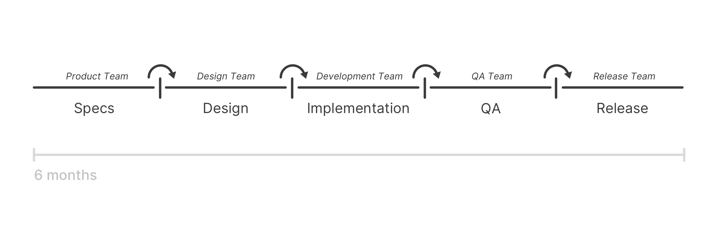 Traditionally, we would create a specialized silo for each separate activity in a multi-step process and assign specialists to focus on each of those independent steps. This was, and still is, a fairly popular assembly line approach to a manufacturing process.
